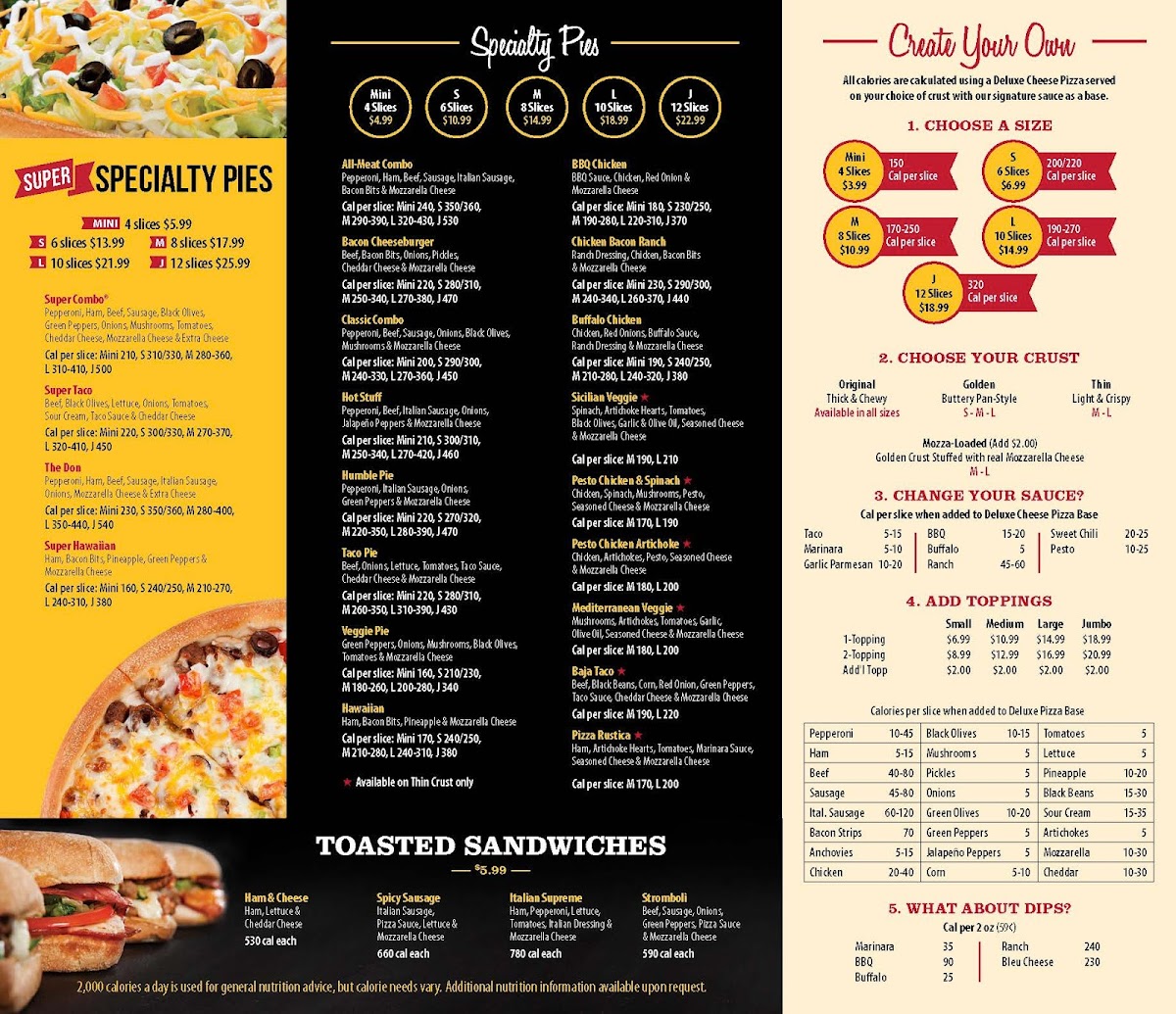 Whether you're stopping by for a family lunch buffet featuring fresh, hot slices and a light salad bar or settling in for dinner with friends in the lively arcade and game room, the menu complements the warm, friendly atmosphere perfectly. Alongside pizzas, the menu features convenient sides such as dippers and sauces, adding a familiar, homey touch to each bite.